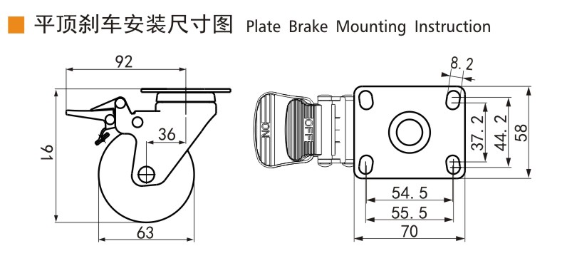 EDL Light 2.5'' 70kg Plate Plastic Dual Brake PU Caster 372225H-3725-67