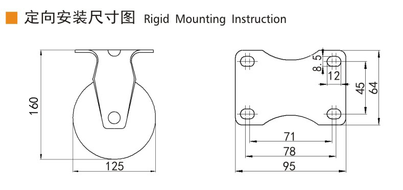 EDL Medium 5'' 130Kg Rigid Ethylene Rubber Caster 50105-575-37