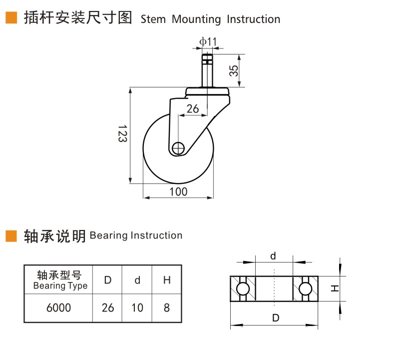 华体会网信誉好25 轻型4英寸70kg插杆万向高强度聚氨酯TPU脚轮36154-364-84