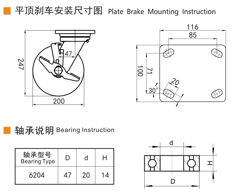 华体会网信誉好25 重型8英寸900kg万向侧刹高强度尼龙(TPA)脚轮 78128C-788-26/C