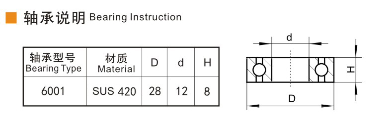 • 滚动轴承:双滚珠轴承