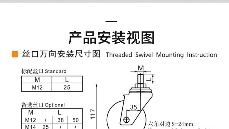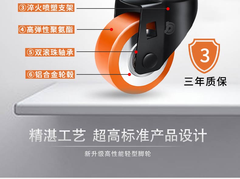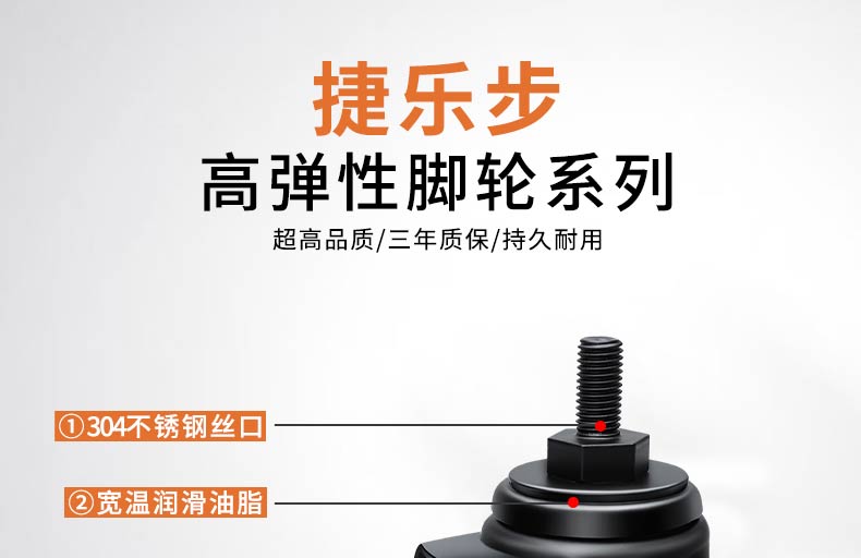 捷乐步 中型3英寸150kg丝杆万向高弹性聚氨酯TPU脚轮J50533-H503-86A
