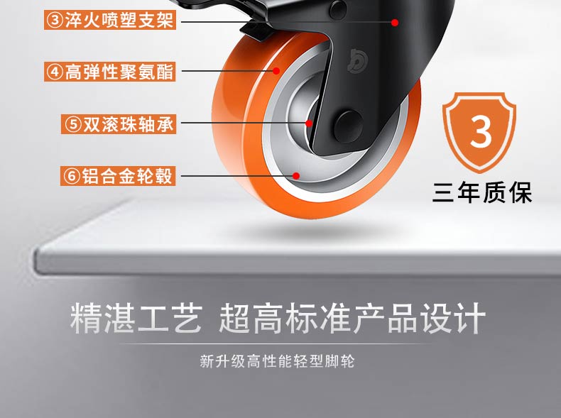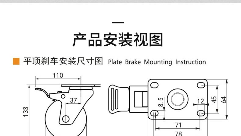 捷乐步 中型4英寸150Kg平顶双刹高弹性聚氨酯(TPU)脚轮 J50524L-H504-86A