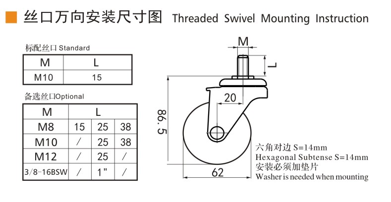 华体会网信誉好25 小型2.5英寸35kg丝口万向聚氨酯PU脚轮261325-2625-66