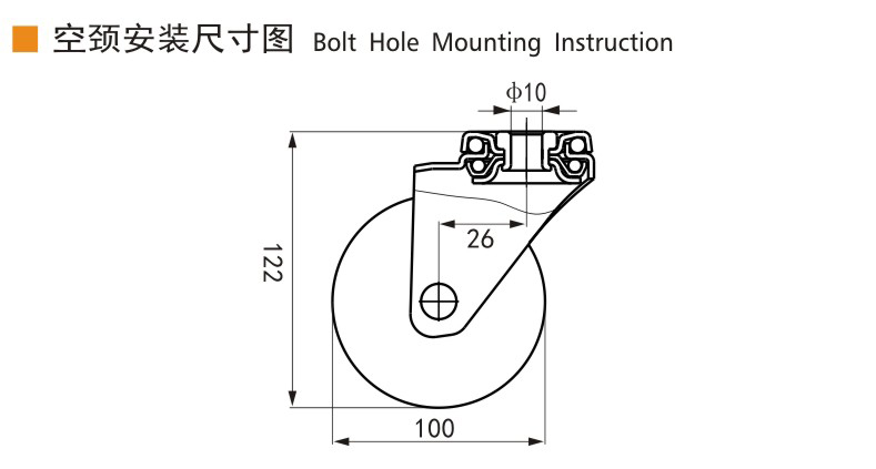 华体会网信誉好25 轻型4英寸60kg空颈万向聚氨酯PU脚轮36174-364-64