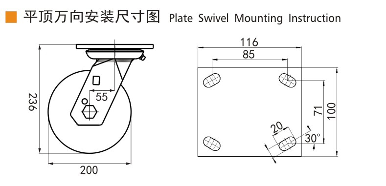 EDL Heavy 8'' 450kg Plate Swivel TPU Caster 73118-738-86