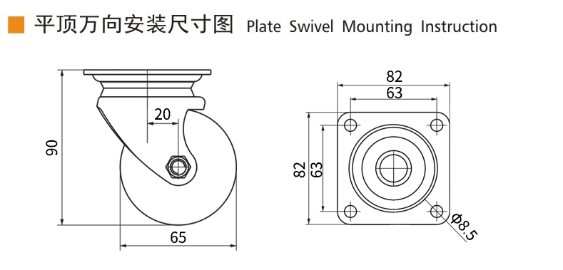 EDL Low Gravity 2.5"450kg Plate Swivel MC Machine Caster M433125-M4325-26