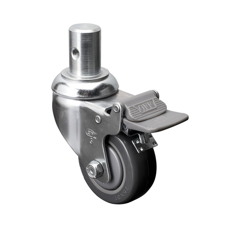 华体会网信誉好25 中型3英寸130Kg插杆塑双刹聚氨酯(PU)脚轮57163H-573-77