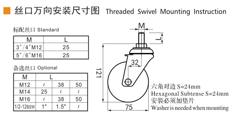 华体会网信誉好25 中型3英寸130Kg丝杆万向高强度聚氨酯(TPU)脚轮57133-573-87