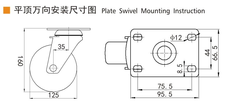 华体会网信誉好25 中型5英寸110Kg平顶万向聚氨酯PU脚轮57215-575-67