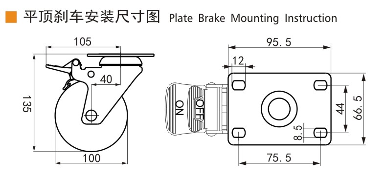 华体会网信誉好25 中型4英寸110Kg塑双刹人造胶(TPE)脚轮57124H-574-57