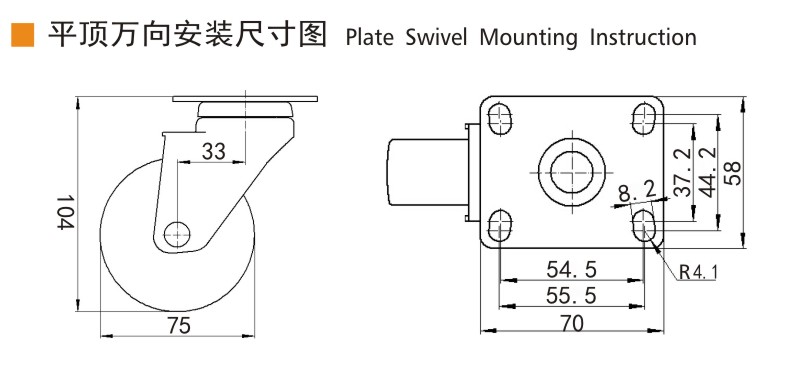 华体会网信誉好25 轻型3英寸80kg平顶万向聚氨酯PU脚轮37113-373-77