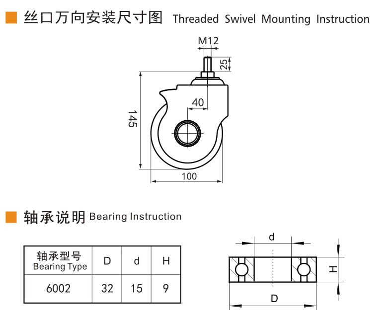 华体会网信誉好25 脚轮 4寸130kg丝口万向聚氨酯(TPU)医疗脚轮 E57134-E574-77