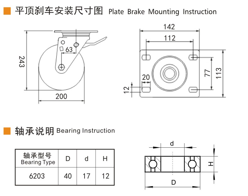 华体会网信誉好25 重型8英寸450kg万向双刹高强度尼龙(TPA)脚轮 77128Q-738-26/M12X80