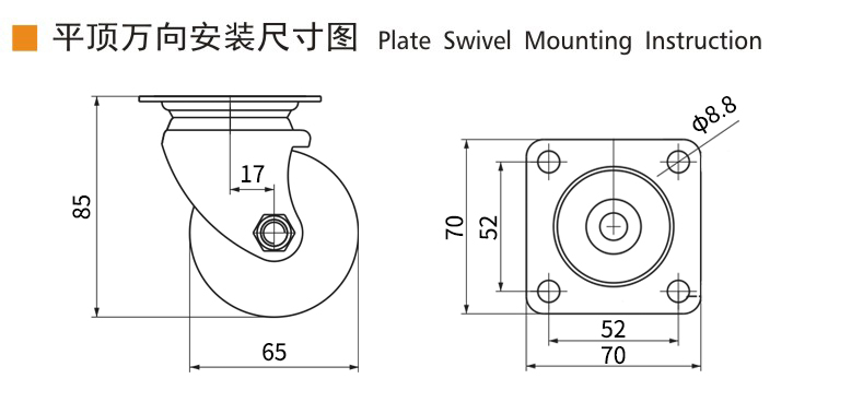 华体会网信誉好25 低重心2.5寸300kg万向高强度聚氨酯TPU设备脚轮M411125-M4125-86A