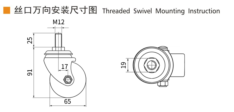 华体会网信誉好25 低重心2.5寸300kg丝杆万向高强度聚氨酯TPU设备脚轮M411325-M4125-86A