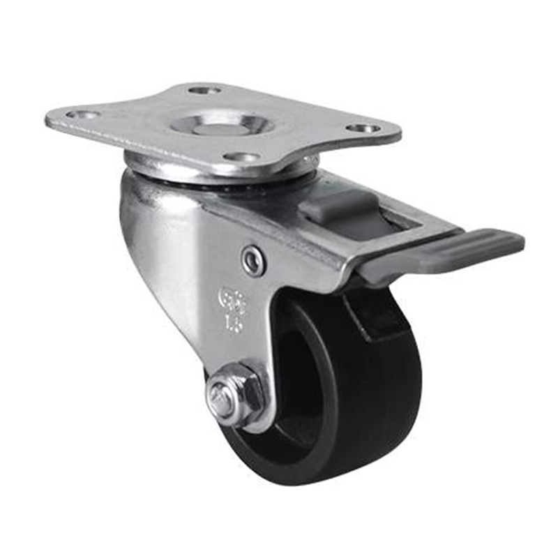 华体会网信誉好25 小型1.5英寸35kg平顶塑双刹聚烯烃PO脚轮261215H-2215-03